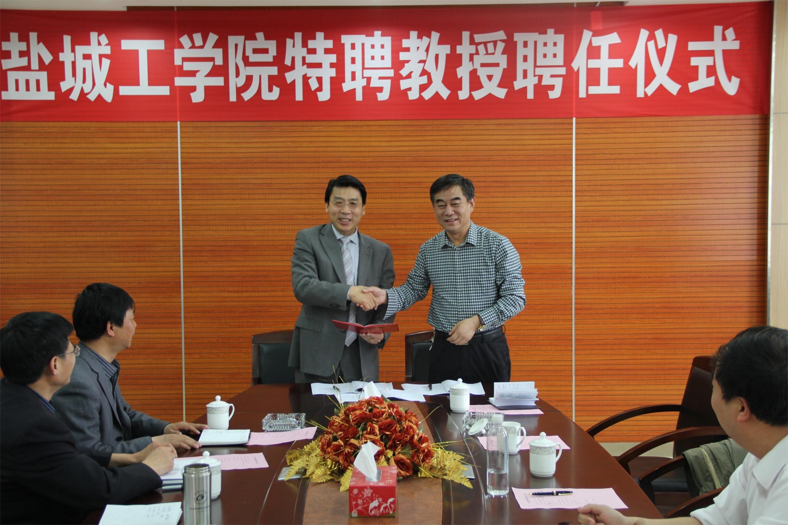 下午,学校在我室研讨室举行特聘教授聘任仪式,聘请毛洪钧教授为我校特聘教授,校长王保林教授向毛洪钧教授颁发聘书。聘任仪式由人事处处长宋长春主持,副校长邵荣,科技产业处处长王路明,副处长刘平成,材料工程学院副院长焦宝祥,省新型环保重点实验室副主任侯贵华、许宁等参加。聘任仪式结束后,双方就人才引进、团队建设、项目申报等方面的进一步合作进行了交流。