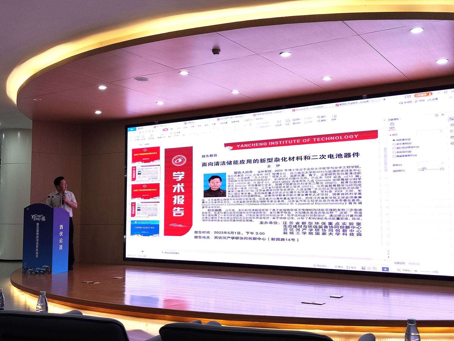 6月1日下午,在西伏河产学研协同创新中心报告厅,南京大学金钟教授应邀作题为《面向清洁储能应用的新型杂化材料和二次电池器件》的学术报告。副校长、市政协副主席丁成,原党委常委、副校长王路明教授出席。产业技术研究院院长、党总支书记严金龙主持,研究院教师、研究生代表等40余人参加。